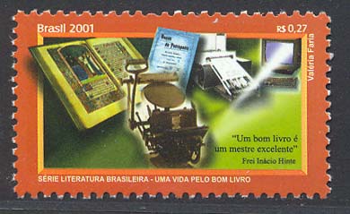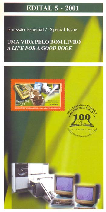 Edital n.5 Arte :Valéria Faria Processo de Impressão: Ofsete Folha: 25 selos Papel: couché gomado Valor Facial: R$ 0,27 cada selo Tiragem 2.500.000 selos Picotagem: 11,5 x 11 Área de desenho: 39 x 21mm Dimensões do selo: 44 x 26mm Data de emissão: 05/3/2001 Impressão: Casa da Moeda do Brasil