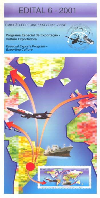Edital n.6 Arte Débora Shimoda Processo de Impressão: Ofsete Folha: 24 selos Papel: couché gomado Valor Facial: R$ 1,30 Tiragem: 1.800.000 selos Picotagem: 12 x 11,5 Área de desenho: 54x 20mm Dimensões do selo: 59 x 25mm Data de emissão: 22/3/2001 Impressão: Casa da Moeda do Brasil