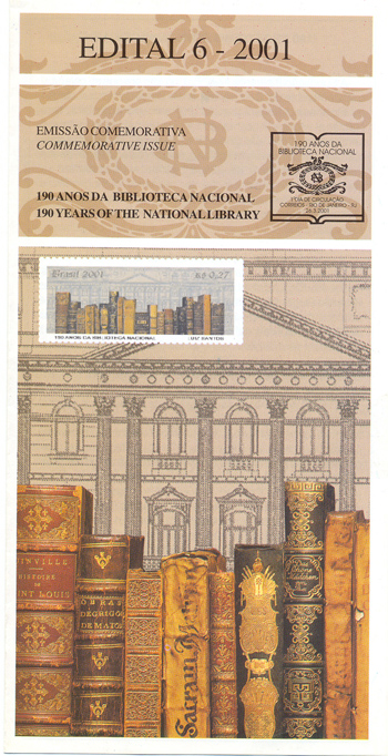 Edital n.7 Arte Luiz Santos Processo de Impressão: Ofsete + talho doce Folha: 24 selos Papel: cuché gomado Valor Facial: R$ 0,27 Tiragem: 2.500.000 selos Picotagem: 12 x 11,5 Área de desenho: 54x 20mm Dimensões do selo: 59 x 25mm Data de emissão: 26/3/2001 Impressão: Casa da Moeda do Brasil