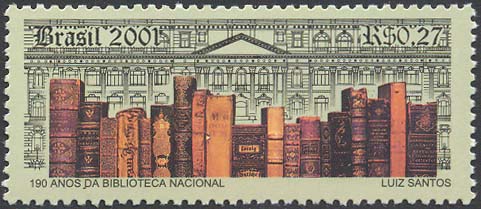 No selo, para retratar a Biblioteca Nacional, o artista criou uma imagem a partir da fusão de sua arquitetura, um dos mais belos patrimônios do nosso país, com seu precioso acrevo de livros raros. Os ligros forma posicionados sugerindo formação das colunas, sustentáculos da instituição. Foi utilizada a técnica de computação gráfica. A impressão mista de talho doce e "off sete" enriqueceu dos detalhes da fachada do prédio e do acervo.