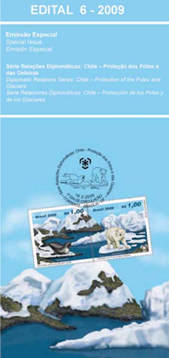 O selo “Série Relações Diplomáticas: Chile – Proteção dos Pólos e das Geleiras” foi criado pela designer Miriam Guimarães, que utilizou as técnicas de desenho e computação gráfica para criar a imagem da emissão, cujo valor é R$ 1,00 e a tiragem é de 1.020.000 unidades.