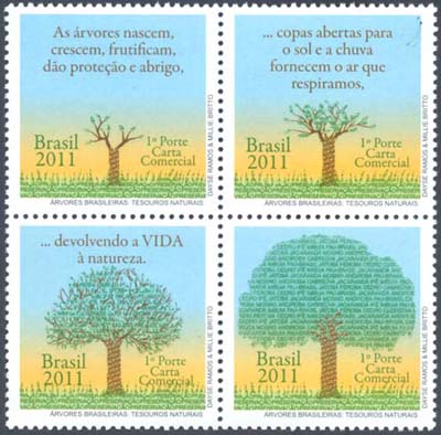 É a reprodução dos selos em forma de quadra, mantendo os mesmos elementos da minifolha na composição da imagem dos selos, exceto os troncos vazados. Foi utilizada a aplicação de verniz no processo de impressão.
