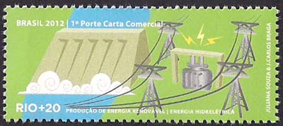 Energia elétrica, hidrelétricas, barragens, estações de conversão, torres e linhas de transmissão. (Este selo poderá vir a fazer parte de minha coleção sobre Itaipu Binacional)