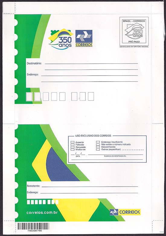 Ao emitir esta folha, assinalando os seus 350 anos, os Correios cumprem o seu papel de contar a história e difundir os valores institucionais, culturais e comerciais de uma empresa reconhecida pela população como uma das mais confiáveis no cenário nacional.
