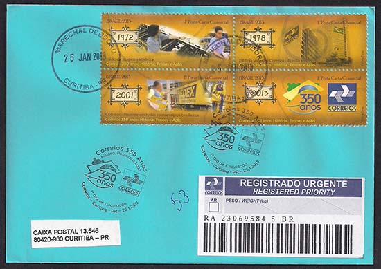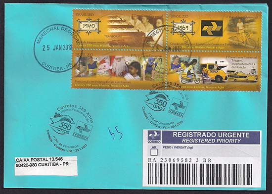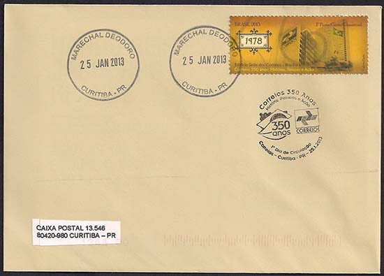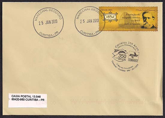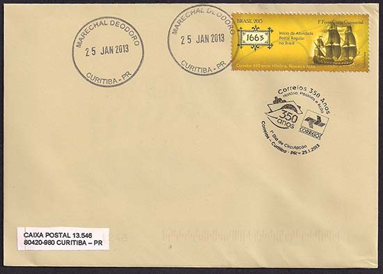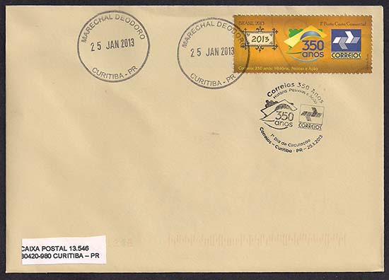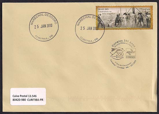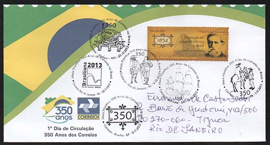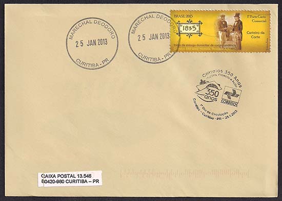 Os Correios Brasileiros completam 350 anos. O marco da institucionalização dos serviços postais regulares no País deu-se em 25 de janeiro de 1663, quando a Coroa portuguesa estendeu a jurisdição do Correio-Mor de Portugal para a América, nomeando o Alferes João Cavaleiro Cardoso para o cargo de Assistente de Correio-Mor na capitania do Rio de Janeiro. Desde então, os Correios passaram por inúmeras transformações, com a finalidade de promover a comunicação rápida e eficiente entre as regiões brasileiras e destas com o mundo.