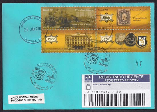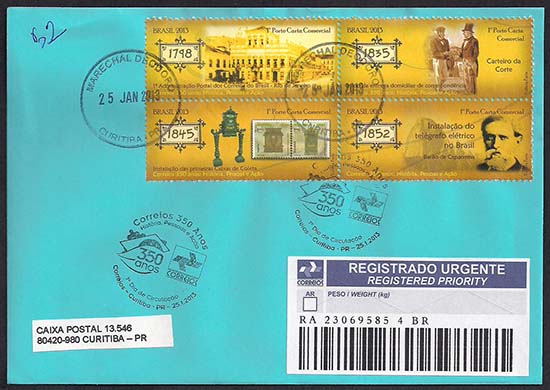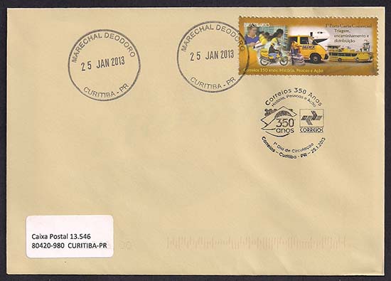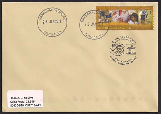 Envelope circulado com carimbos datador e comemorativo de 1º dia de circulação