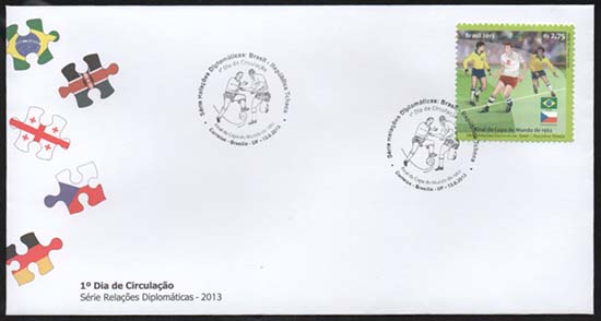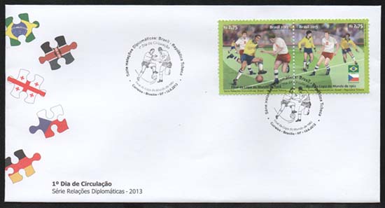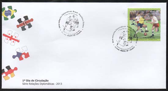 Os selos ilustram: Relações Diplomáticas, futebol, competições esportivas, uniformes esportivos, passes de futebol.