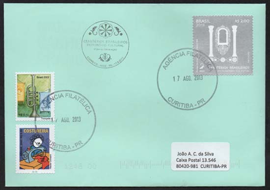 Edital nº 15 Artista: Fabio Lopez Processo de Impressão: Ofsete + cor especial Folha: 24 selos, sendo 6 de cada motivo Papel: Cuchê gomado Valor facial: R$2,00 cada selo Tiragem: 600.000, sendo 150.000 de cada motivo Área de desenho: 38mm x 38mm Dimensões do selo: 38mm x 38mm Picotagem: 11,5 x 11,5 Data de emissão: 17/8/2013 Locais de lançamento: Mucugê/BA, Arez/RN, Campo Maior/PI e Belém/PA Impressão: Casa da Moeda do Brasil Prazo de comercialização pela ECT: até 31 de dezembro de 2016 (este prazo não será considerado quando o selo/bloco for comercializado como parte integrante das coleções anuais, cartelas temáticas ou quando destinado para fins de elaboração de material promocional).