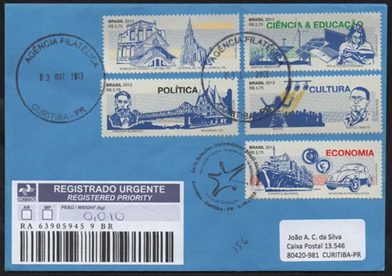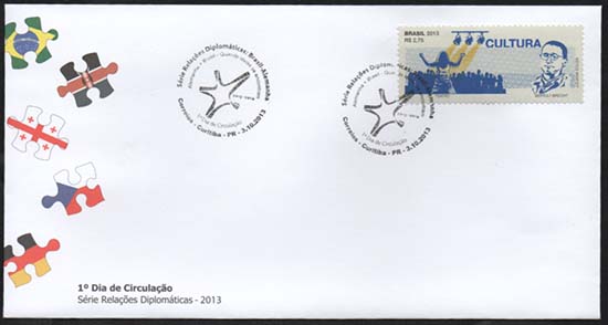 Edital nº 17 Arte: Juliana Souza Processo de Impressão: ofsete + verniz UV Minifolha com 5 selos Papel: cuchê gomado Valor facial: R$2,75 cada selo Tiragem: 150.000 minifolhas Área de desenho: 59mm x 25mm Dimensão do selo: 59mm x 25mm Dimensão da minifolha: 148,5mm x 210mm Picotagem: 11,5 x 12 Data de emissão: 3/10/2013 Locais de lançamento: São Paulo/SP, Canela/RS, Blumenau/SC, Curitiba/PR, Brasília/DF, Rio de Janeiro/RJ, Recife/PE e Porto Alegre/RS Peça filatélica: Envelope de 1º Dia de Circulação Tiragem: 10.000 Impressão: Casa da Moeda do Brasil Prazo de comercialização pela ECT: até 31 de dezembro de 2016 (este prazo não será considerado quando o selo/bloco for comercializado como parte integrante das coleções anuais, cartelas temáticas ou quando destinado para fins de elaboração de material promocional).