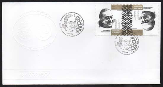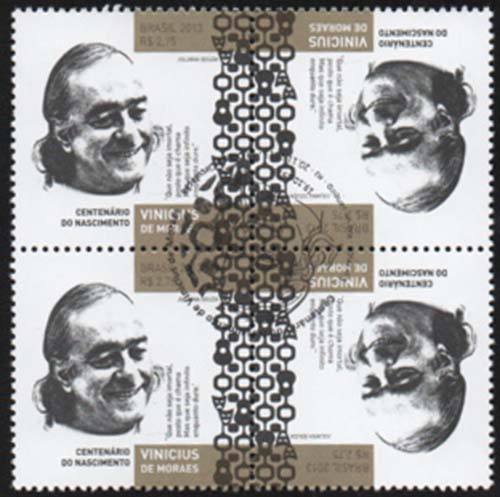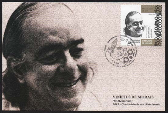 Por meio dessa emissão, os Correios homenageiam o Centenário do Nascimento de Vinicius de Moraes, poeta lírico e apaixonado, artista de grande acervo, notabilizado por seus sonetos e referencial da música popular brasileira.