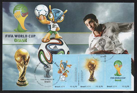 O bloco representa a Copa do Mundo da FIFA Brasil 2014 ™ com três de suas principais marcas oficiais em selos individuais: o mascote, o troféu e o emblema. Utilizados como base as cores e o “official look”, que são os padrões visuais do Mundial, mantém-se a identidade com a emissão das cidades-sede.