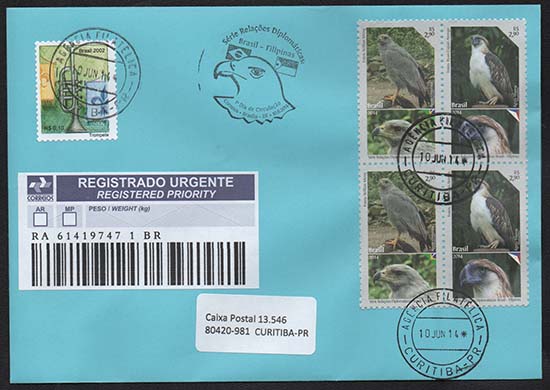 Tendo isso em vista, os Correios do Brasil, em sua Série Relações Diplomáticas: Brasil-Filipinas, focalizam em selos postais duas aves de grande importância para a biodiversidade dos países, bem como chama a atenção para a preservação dessas espécies, atualmente ameaçadas de extinção: a águia filipina (Pithecophaga jefferyi) e a águia cinzenta (Urubitinga coronata).