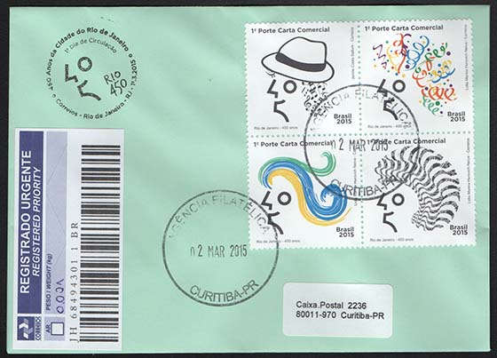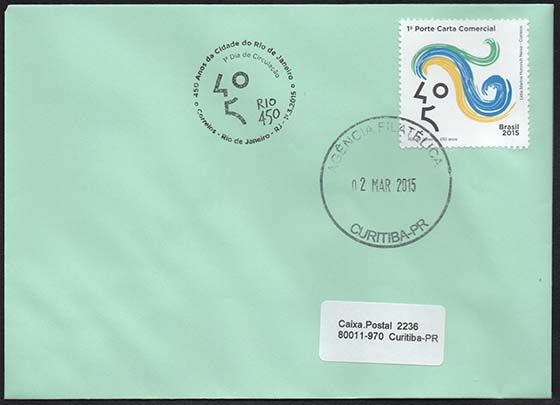 Com os selos comemorativos inspirados na marca Rio450, os Correios prestam uma expressiva homenagem ao povo carioca e à Cidade Maravilhosa. A comemoração dos 450 anos acontece em meio a uma revolução digital, em que, contudo, as correspondências e os selos reafirmam seu secular poder de comunicar e transmitir informações. Parabéns ao Rio!