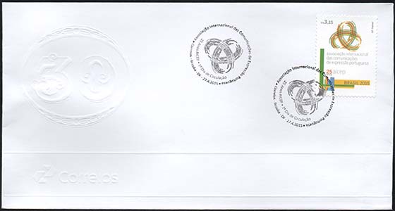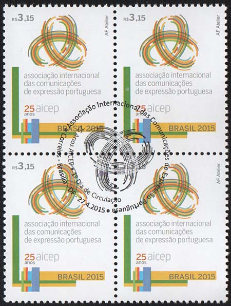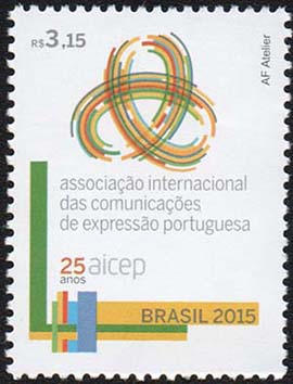 O selo destaca a marca dos 25 anos da Associação Internacional das Comunicações de Expressão Portuguesa – AICEP. Ao centro, o logotipo representa as três vertentes da comunicação - postal, telecomunicação e de conteúdos (televisão) - que se entrelaçam, convergem e se completam, reforçando e consolidando, assim, o papel da Associação, cada vez mais inclusiva das várias áreas das Comunicações no Mundo da Lusofonia, em benefício das atividades de cooperação para o desenvolvimento dos seus membros. Abaixo do logo, a inscrição referente aos 25 Anos da AICEP. Na lateral esquerda faixas coloridas reproduzem as cores das bandeiras dos países e territórios afiliados, no sentido vertical e no horizontal, representando os dois eixos em que se estruturam as várias vertentes das comunicações e a Língua Portuguesa, consideradas objetivos da AICEP. Foi utilizada a técnica de computação gráfica.