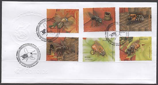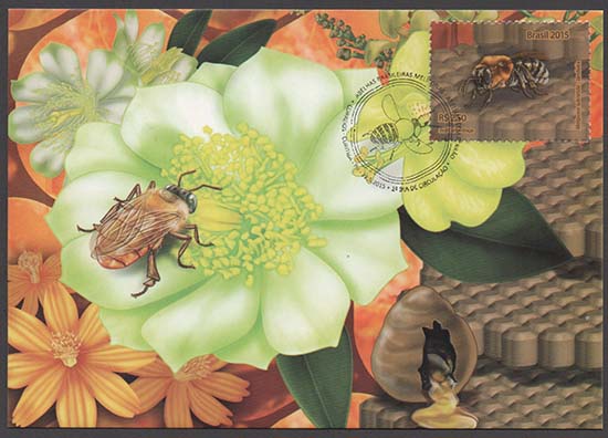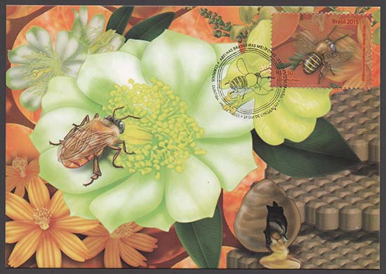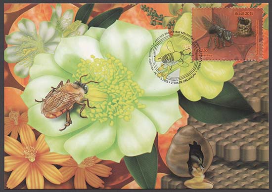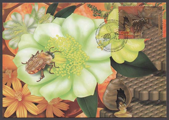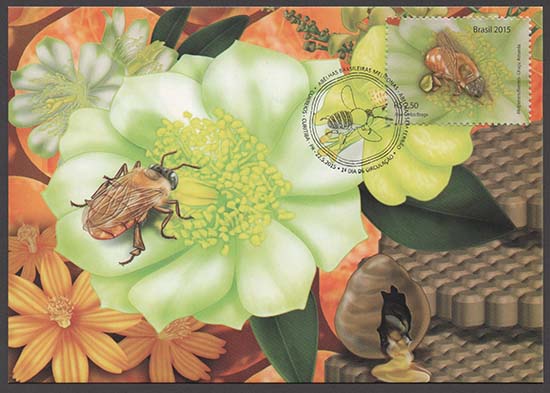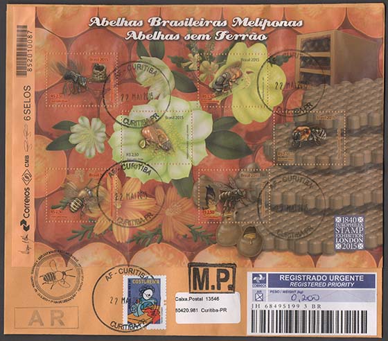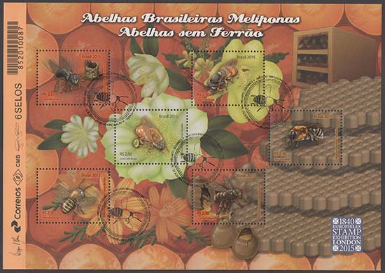 Abelhas, abelhas sem ferrão, fauna, flora, mel, apicultura, alimentação, fauna em extinção, exposições filatélicas, Exposição Filatélica London 2015.