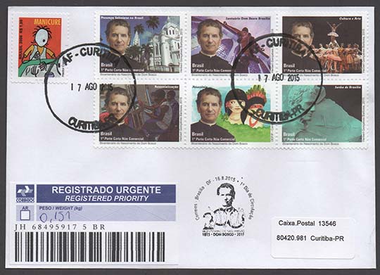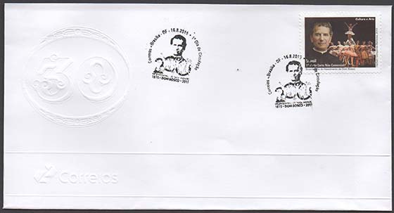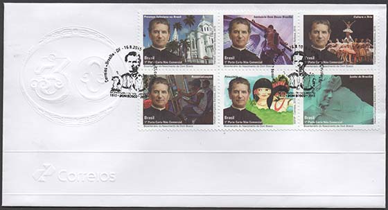 Os selos que compõem esta sextilha destacam seis motivos associados à obra de São João Bosco, com o objetivo de marcar as comemorações de seu bicentenário de nascimento. Em primeiro plano, ao lado esquerdo de cada selo, encontra-se a imagem de Dom Bosco. Para referenciar a magnitude de sua obra, foram selecionados, com o auxílio de filhos salesianos, os seguintes motivos secundários: no primeiro selo, o Santuário Maria Auxiliadora, localizado no Bairro Santa Rosa, em Niterói, marca a chegada dos filhos de Dom Bosco ao Brasil; no segundo selo, a parte interna do Santuário Dom Bosco, construído, na década de 1960, em Brasília; no terceiro selo é destacado um grupo de dança das escolas e presenças salesianas; no quarto selo, é referenciada a atuação concreta de Dom Bosco e dos seus discípulos em relação à promoção integral dos jovens, especialmente os pobres e aqueles considerados em situação de vulnerabilidade social; o quinto selo remete à atuação de Dom Bosco em relação às culturas e povos indígenas; e, no sexto selo, vê-se a estátua de Dom Bosco, que se encontra no interior da Catedral Metropolitana de Brasília e a representação do sonho que orientou a fundação da capital do Brasil. A técnica utilizada foi a computação gráfica.