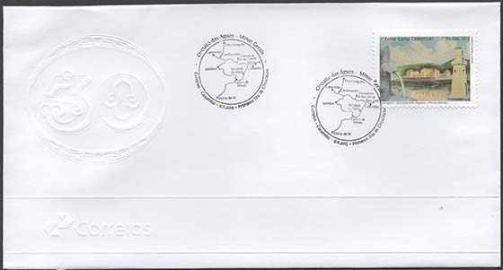 Envelope circulado com carimbos datador e comemorativo de 1º dia de circulação