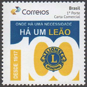 "Onde há uma necessidade há um Leão", este é o lema expresso no Selo Personalizado que comemora os 100 Anos do Lions Clubs International. O Lions Clubs Internacional é atualmente a maior, dentre as organizações internacionais de clubes de serviço do mundo, voltada para serviços humanitários, fundada por Melvin Jones, em 1917.(Data e imagem provisórias).