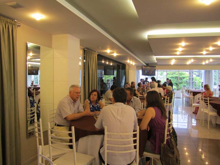 O almoço aconteceu nas amplas e confortáveis dependências do Restaurante da AMP - Associação Médica do Paraná, constando de um "buffet" de saladas e pratos quentes para todos os gostos, muito bem preparados e serviço de bebida, inclusive vinhos, à vontade.