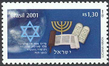 São apresentados três calendários de civilizações distintas: o judaico, o cristão e o islâmico, fazendo alusão às diferentes formas utilizadas em culturas distintas para a contagem do tempo. Na composição, a artista apresentou elementos específicos, simbolizando as três religiões focalizadas. Assim, o selo sobre o Calendário Judaico apresenta importantes símbolos como o Maguen David (estrela de seis pontas), o Menorá (candelabro de sete braços, uma das características mais importantes do Tabernáculo e dos Templos), Torá (rolo, Livro Sagrado), Decálogo (Dez mandamentos, dado por Deus a Moisés), e o texto em hebraico que significa "Bendito sejas Tu, Senhor nosso Deus, Rei do Universo, que nos deste vida, nos sustentaste e nos fizeste chegar à essa época." Tevet 5761, são a descrição do mês e ano no qual se encontrará o calendário judaico em janeiro de 2001.