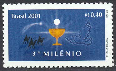 Para ilustrar o calendário cristão, que em 2001 iniciará seu 32 Milênio, os elementos utilizados foram: os Reis Magos, o Cálice, a Hóstia e a Pomba, fazendo referência ao nascimento, vida e missão de Cristo.