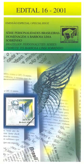 Edital n.16 Arte: Thereza Regina Bsrja Fidalgo Processo de Impressão: Ofsete Folha: 24 selos Papel: cuchécom brilho Valor Facial: R$0,40 Tiragem: 1.920.0000 selos Picotagem: 11,5 x 11,5 Área de desenho: 33 x 33mm Dimensões do selo: 38 x 38mm Data de emissão: 6/6/2001 Local de lançamento: Rio de Janeiro/RJ Impressão: Casa da Moeda do Brasil