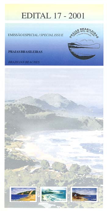 Edital n.17 Arte: Sergiomar/Asta dos Reis Processo de Impressão: Ofsete Folha: 25 selos Papel: cuché gomado com brilho Valor Facial: R$0,40 Tiragem: Jericoacoara : 1.800.0000 selos; Praia de Ponta Negra: 1.800.0000 selos; Praia do Rosa: 900.000 selos Picotagem: 11 x 11,5 Área de desenho: 21 x 39mm Dimensões do selo: 26 x 44mm Data de emissão: 13/6/2001 Locais de Lançamento: Jijoca de Jericoacoara/CE, Natal/RN, Imbituba/SC Peças: Cartões-Postais Impressão: Casa da Moeda do Brasil
