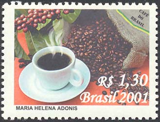 No selo, a artista apresenta elementos que mostram o café em suas várias etapas: o grão natural, o grão torrado e o café já preparado e servido em xícara com detalhe da fumaça, indicando o café quente. Trata-se do segundo selo aromático brasileiro. Foram utilizadas as técnicas de fotocolagem e de computação gráfica.