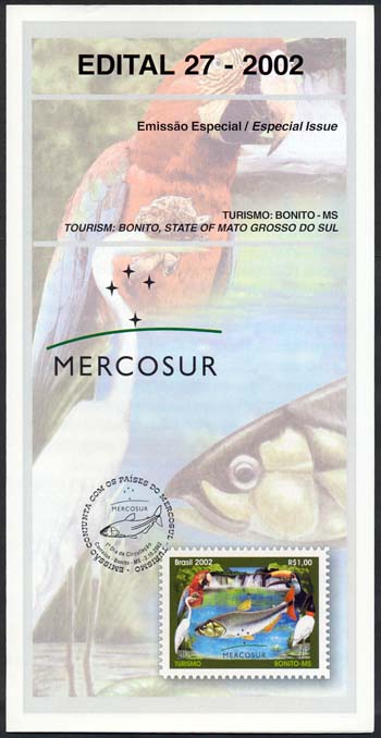também refletida na água. A logomarca do Mercosul está inserida ao centro, na parte inferior, por se tratar de uma emissão conjunta com