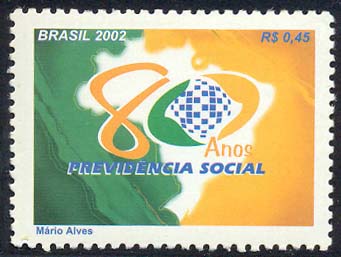 O selo destaca a importância da Previdência Social no Brasil. O artista enfatiza os 80 anos da Previdência Social, unindo o formato