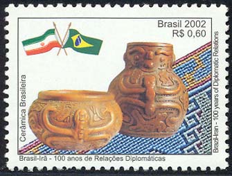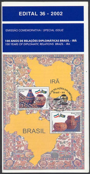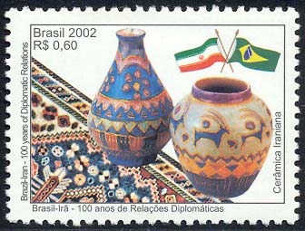 40mm x 30mm Data de emissão: 15/12/2002 Local de lançamento: Teerã - Irã Brasília - Brasil Impressão: Casa da Moeda do Brasil