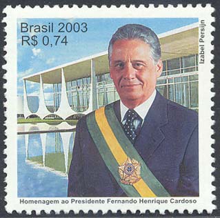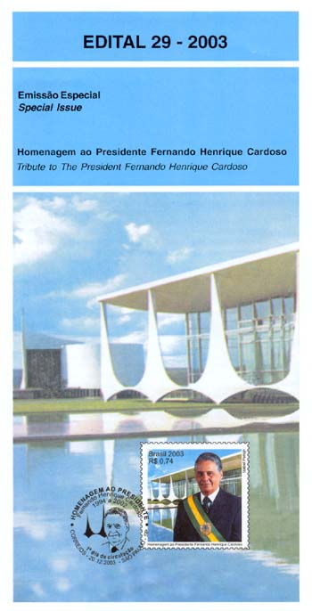 No selo, foi utilizada a técnica de computação gráfica aliada à fotografia. Apresenta, em primeiro plano, a figura do Presidente Fernando Henrique Cardoso, portando a faixa presidencial, o que atribui à peça caráter solene e oficial. Ao fundo, a imagem do Palácio da Alvorada, residência oficial do Presidente da República. As arcadas do Alvorada refletidas no espelho d'água reforçam a idéia da tranqüilidade e da estabilidade que marcaram as ações do governo Fernando Henrique Cardoso.