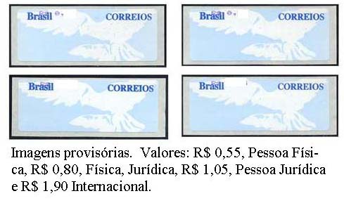 2004 - Selo-Etiqueta de Franqueamento Auto Adesivo Semi-Autômato "Pombas Brancas e Fundo Cinza - Novos Valores