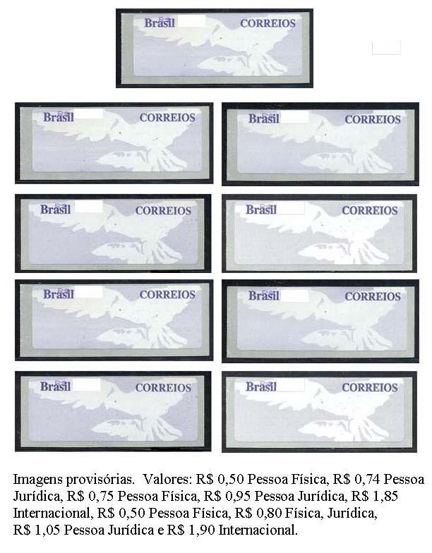 18-10-2004 - Selo-Etiqueta de Franqueamento Auto Adesivo Semi-Autômato "Pombas Brancas e Fundo Cinza - Novos Valores