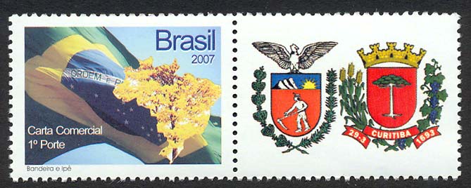 Obs: a ilustração constante da vinheta do selo "personalizado" é formada pelos Brasões do Estado do Paraná e da cidade de Curitiba. Esta personalização foi elaborada com a finalidade principal de utilização na