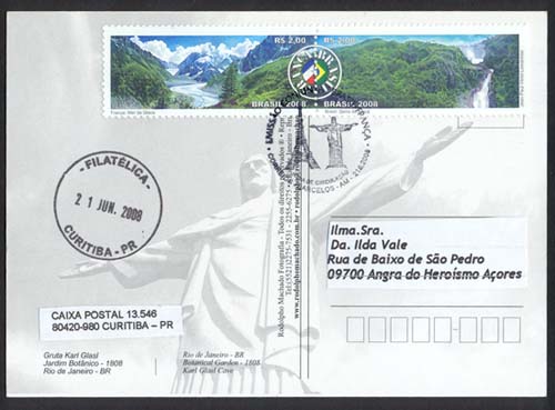 Algumas peças filatélicas, montadas com base no selo e no carimbo comemorativo.