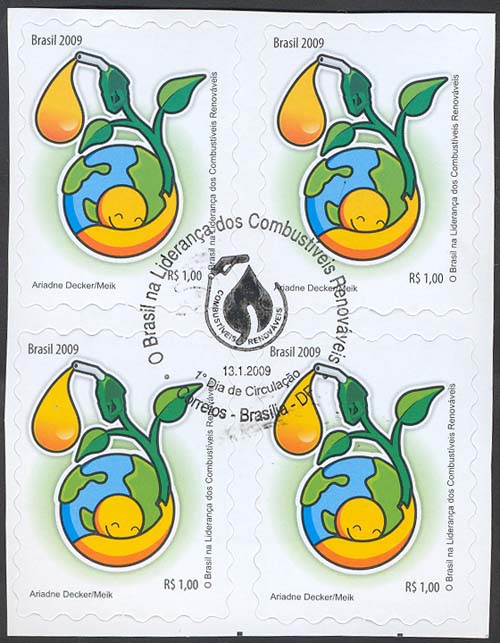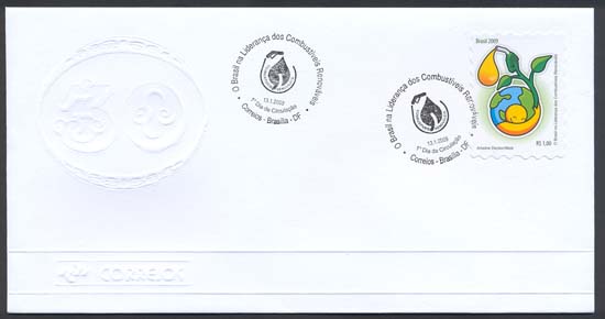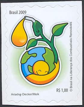 O selo apresenta uma figura cujo braço é uma planta que abraça o planeta se transformando em uma bomba fornecedora de combustível, da qual sai o óleo em forma de gota dourada. Essa gota é preciosa pela importância que representa para a humanidade. As cores verde, amarelo e azul são uma associação às cores da Bandeira brasileira. Foram utilizadas as técnicas de desenho e computação gráfica.