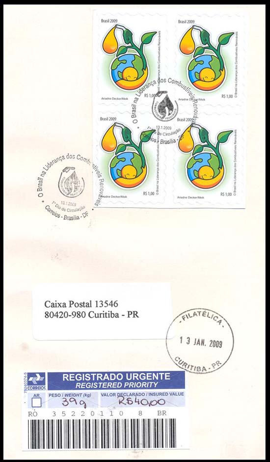 Artista: Ariadne Decker/Meik Processo de Impressão: ofsete Folha com 36 selos Papel: Cuchê gomado auto-adesivo Valor facial: R$1,00 Tiragem: 10.200.000 selos Área de desenho: 25mm x 35mm Dimensões do selo: 30mm x 40mm Picotagem: semi-corte Data de emissão: 13/1/2009 Locais de lançamento: Brasília/DF, Ribeirão Preto/SP, Piracicaba/SP e Montes Claros/MG Impressão: Casa da Moeda do Brasil Prazo de comercialização pela ECT: até 31 de dezembro de 2012(este prazo não será considerado quando o selo/bloco for comercializado como parte integrante das coleções anuais, cartelas temáticas ou quando destinado para fins de elaboração de material promocional.) Versão: Departamento de Filatelia e Produtos/ECT.