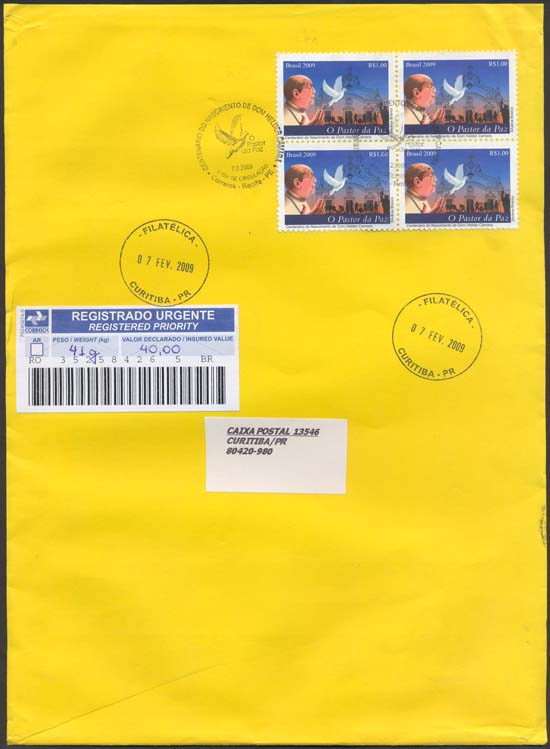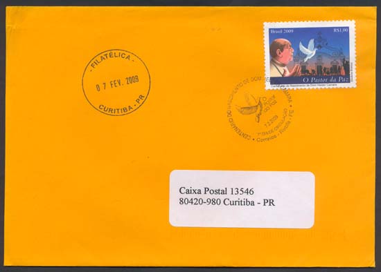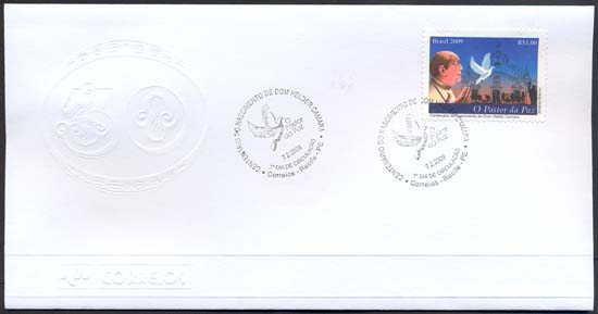 O selo e o carimbo comemorativo ilustram: vultos celebres, religião, pastorais, movimentos sociais, igrejas, fauna, agricultura, fundações