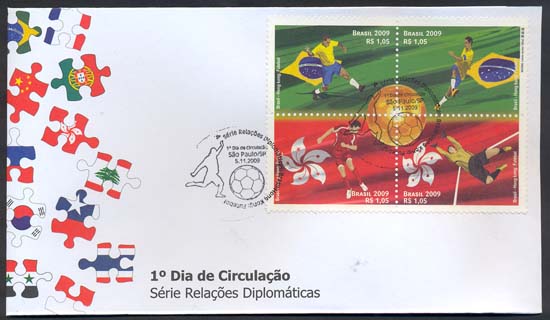 Edital nº 26 Arte: Wong Chun-Hong (Mr.) Processo de Impressão: ofsete Forma de emissão: quadra de selos Folha: 24 selos Papel: cuchê gomado Valor facial: R$1,05 cada selo Tiragem: 600.000 selos Picotagem: 11,5 x 12 Área de desenho: 37,5mm x 27,5mm Dimensões do selo: 40mm x 30mm Data de emissão: 5/11/2009 Locais de lançamento: São Paulo/SP e Hong Kong/China Peça filatélica: Envelope de 1º Circulação Tiragem: 10.000 envelopes Impressão: Casa da Moeda do Brasil Prazo de comercialização pela ECT: até 31 de dezembro de 2012 (este prazo não será considerado quando o selo/bloco for comercializado como parte integrante das coleções anuais, cartelas temáticas ou quando destinado para fins de elaboração de material promocional.)