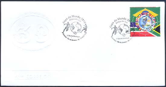 12 - Série Copa do Mundo 2010 - África do Sul - Envelope circulado com carimbo de 1º dia de circulação