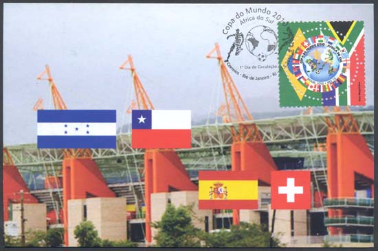 Postal de emissão de Edição Schmittstamps 2010, Copa do Mundo 2010 - África do Sul, Grupo H, Honduras, Chile, Espanha, Suiça, Estádio Mbombela - Nelspruit