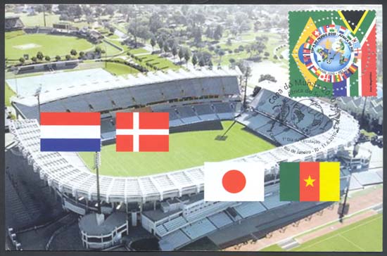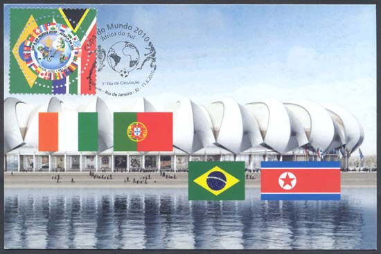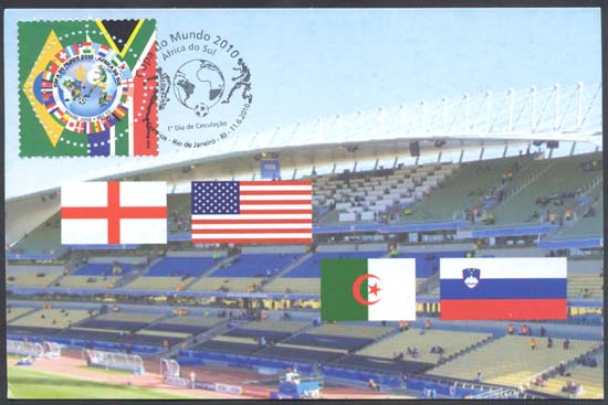 Postal de emissão de Edição Schmittstamps 2010, Copa do Mundo 2010 - África do Sul, Grupo G, Costa do Margim, Portugal, Brasil, Coreia do Norte, Estádio Nelson Mandela - Porto Elizabeth