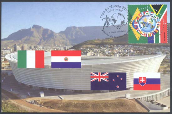 Postal de emissão de Edição Schmittstamps 2010, Copa do Mundo 2010 - África do Sul, Grupo F, Itália, Paraguai, Nova Zelândia, Eslováquia, Estádio Green Point - Cidade do Cabo