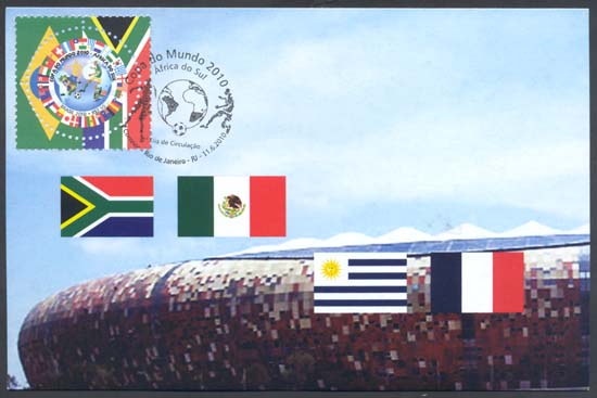 Postal de emissão de Edição Schmittstamps 2010, Copa do Mundo 2010 - África do Sul, Grupo A, África do Sul, México, Uruguai, França, Estádio Soccer City - Joanesburgo