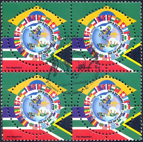 12 - Série Copa do Mundo 2010 - África do Sul - Quadra com carimbo de 1º dia de circulação