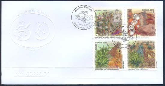 Esta emissão filatélica aborda quatro plantas têxteis: algodão, cairo, juta e sisal, que se destacam, significativamente, no Brasil, por sua importância econômica e social