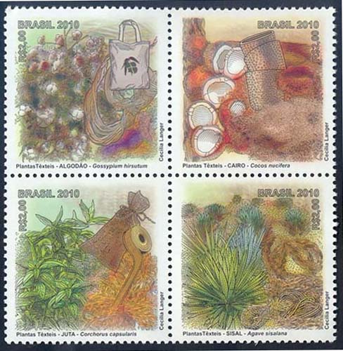 A quadra retrata quatro plantas têxteis muito conhecidas no Brasil, e de grande importância econômica: o algodão, o cairo (fibra de coco), a juta e o sisal. Em cada selo são mostrados produtos confeccionados com a matéria-prima derivada desses vegetais, como bolsas, cordas, tecidos e vasos. Foram utilizadas as técnicas de desenho em calcografia e computação gráfica.