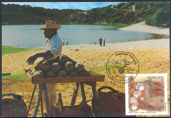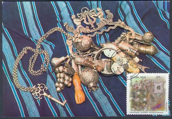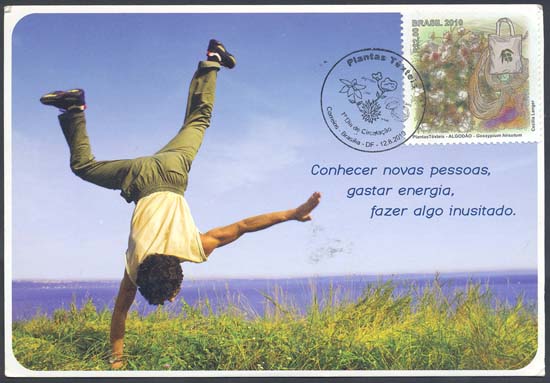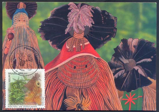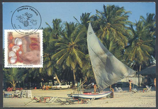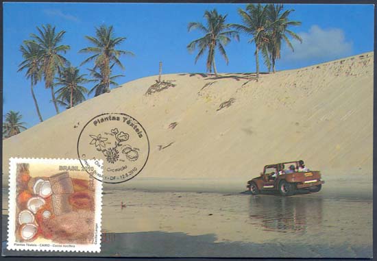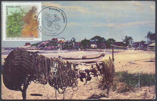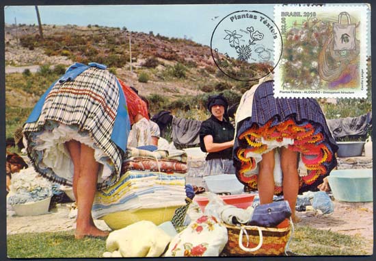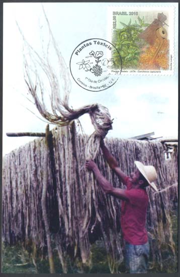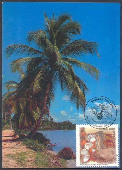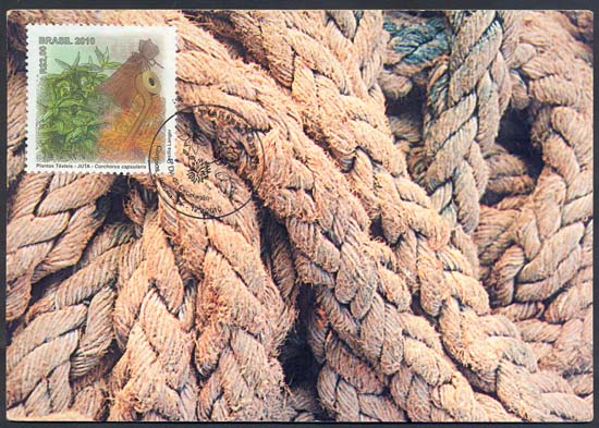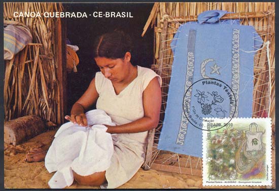 Esta emissão, por suas caracteristicas pictoriais, em que é mostrada a planta e exemplos dos produtos elaborados com as diferentes fibras, permite um amplo espectro de criatividade na montagem de "máximos postais", mediante a utilização de cartões postais que mostrem quer a planta "in natura" quer os inúmeros produtos. Por esse motivo, nos permitimos exagerar na criação dos "máximos", que em alguns casos seriam considerados como apenas "curiosidades filatélicas" bem como deixar de lado a preocupação com a concordância de local, pois o carimbo comemorativo é de Brasilia, enquanto os cartôes são de várias regiôes, inclusive outros países. Entendo que easas montagens trazem grande satisfação pessoal e embelezam qualquer coleção para exposição em mostra não competitiva. Já ao preparar uma coleção para inscrição em mostra competitiva, a maioria dos "máximos" não deveria ser considerada, sob pena de infração às regras e consequente perda de pontos. Com relação às fibras e seus produtos, pode ter ocorrido eventual equívoco na sua identificação.
