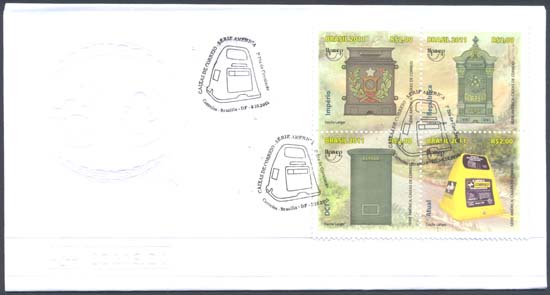 Empenhada no objetivo de associar as Caixas de Correio a importantes fases da história do Brasil, a Empresa Brasileira de Correios e Telégrafos selecionou para esta quadra de selos as caixas representativas do Império, da República, do DCT – Departamento de Correios e Telégrafos – e dos dias atuais.